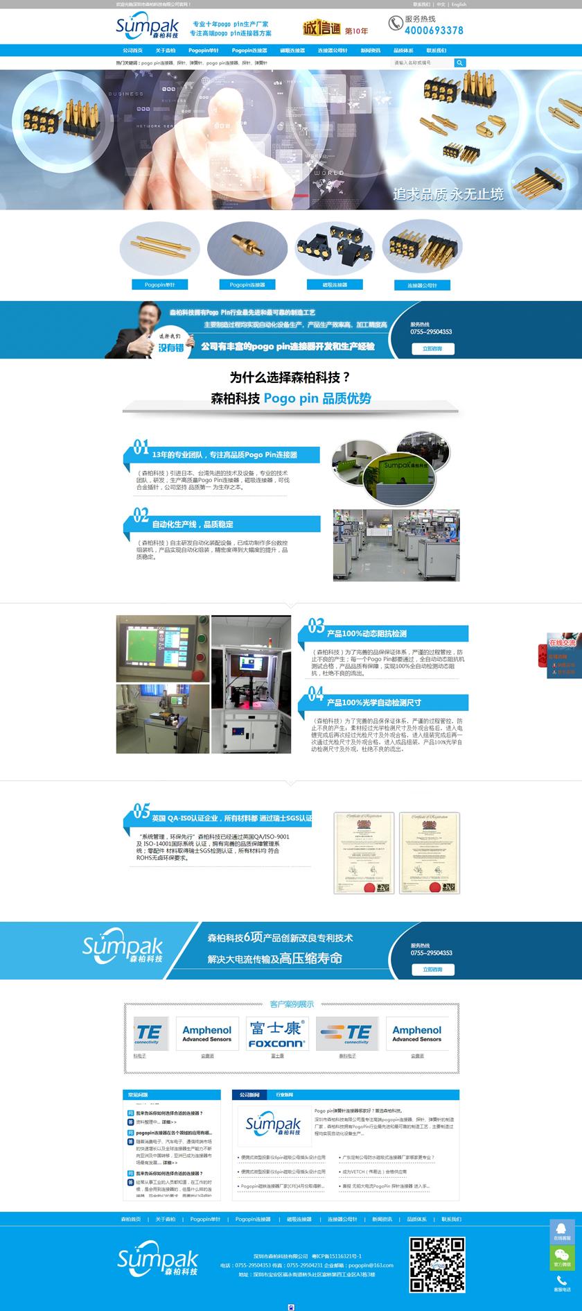Project Description 深圳市森柏科技有限公司是专注高端pogo pin连接器、探针、弹簧针的制造厂家,森柏科技拥有Pogo Pin行业最先进和最可靠的制造工艺,主要制造过程均实现自动化设备生产,产品生产效率高,加工精度高,重要检测过程均采用自动化快速识别系统,大大降低了人为操作失误的风险,极大的提升了检测效率,工艺过程得到极大的改善和满足。因此产品质量和稳定性获得巨大突破。 Official website address 阜阳http://www.zgsumpak.com I want to share