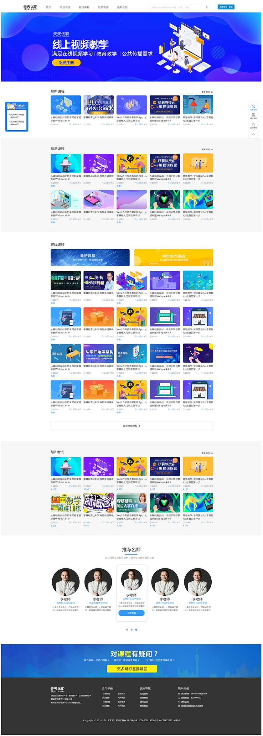 Project Description 满足在线视频学习,教育教学,公共传播需求, 建设学员管理,视频上传, 账号权限分级等商户后台管理功能 Official website address 阜阳http://tiantianyouzhi.com/ I want to share